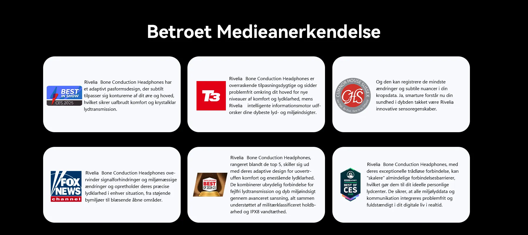 Træt af øresmerter, tryk eller ubehag fra dine hovedtelefoner efter blot kort tid? Rivelia hovedtelefoner har et adaptivt materiale og en præcis ergonomisk form designet til forsigtigt at tilpasse sig dine unikke ørekonturer. Sig farvel til at glide, klemme eller akavede pasforme. Hold dine ører kølige og sunde.